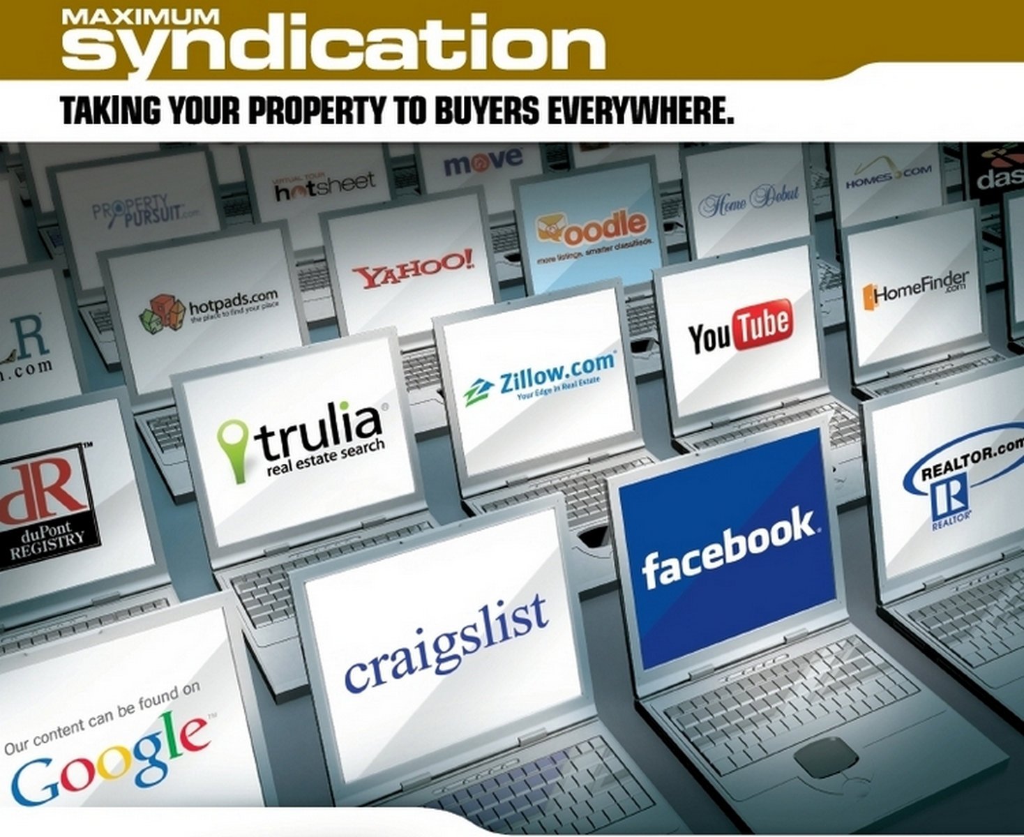 We syndicate your home virtual tour on dozens of websites, including Yahoo, Trulia, Zillow,